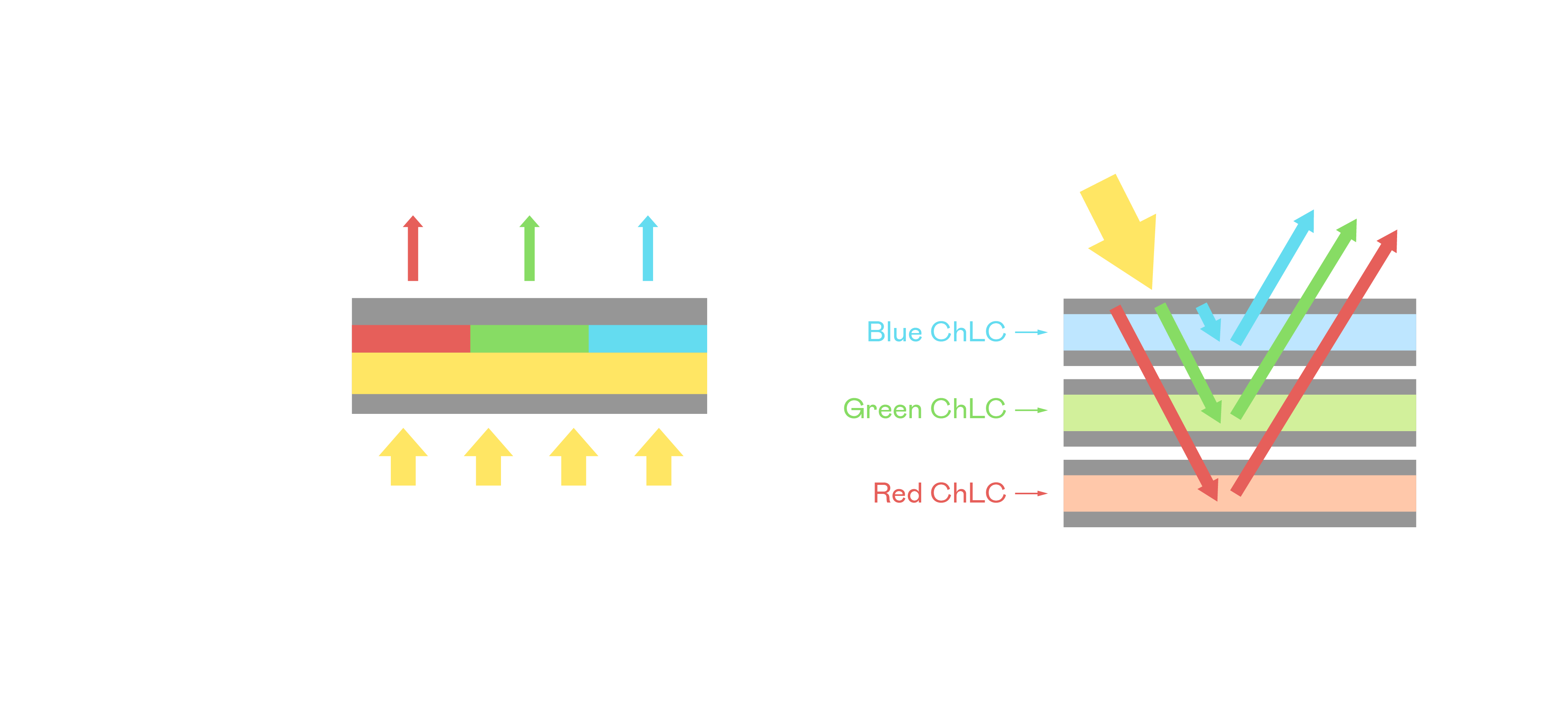 九游会ag膽固醇液晶顯示器是由紅、綠、藍三層膽固醇液晶面板堆疊而成,並採用無彩色濾光片設計,減少環境光在反射過程中的損耗。